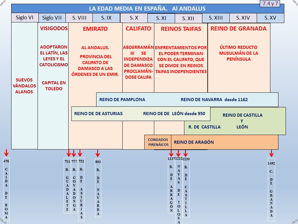 En el año 711 ocurre un hecho trascendental, los musulmanes atraviesan el estrecho de Gibraltar y vencen a los visigodos en la batalla de Guadalete en el año 711. En pocos años conquistan casi toda la península, se establecieron en ella y la llamaron Al Andalus.
